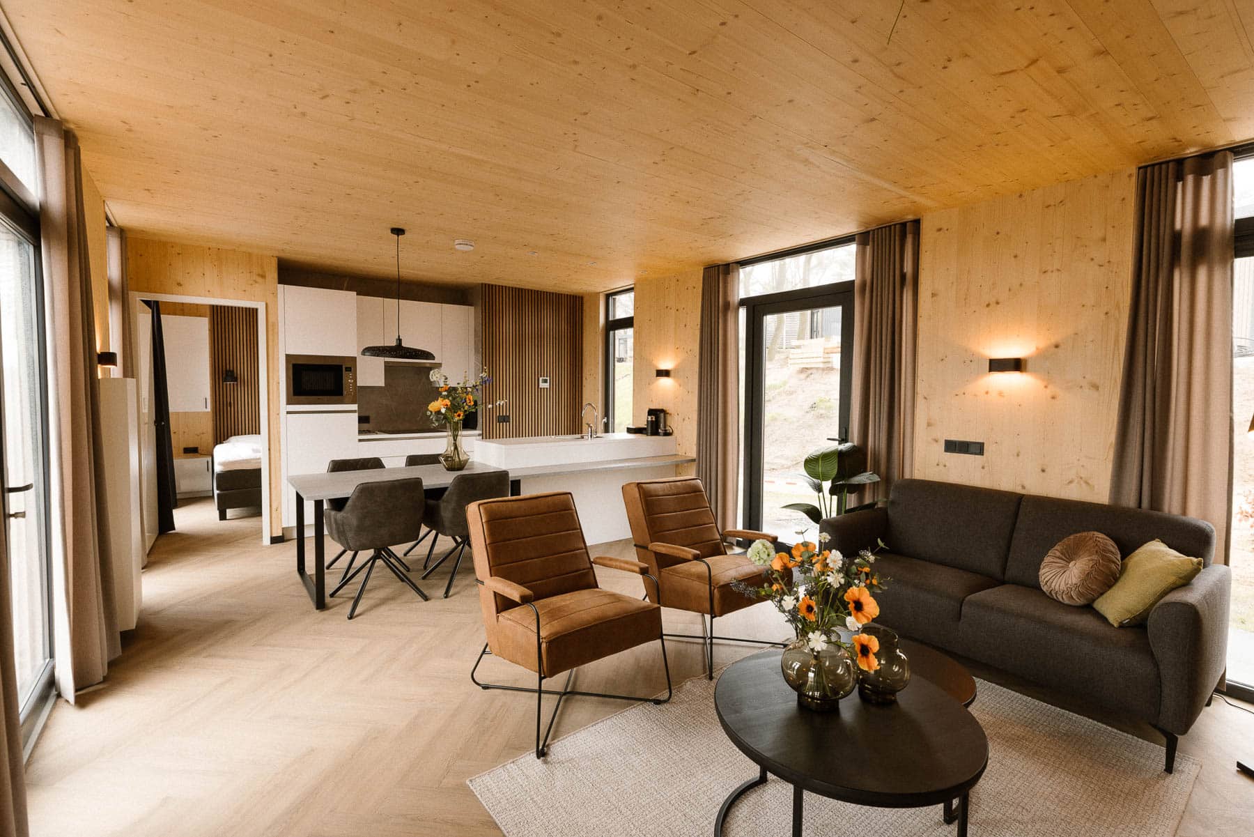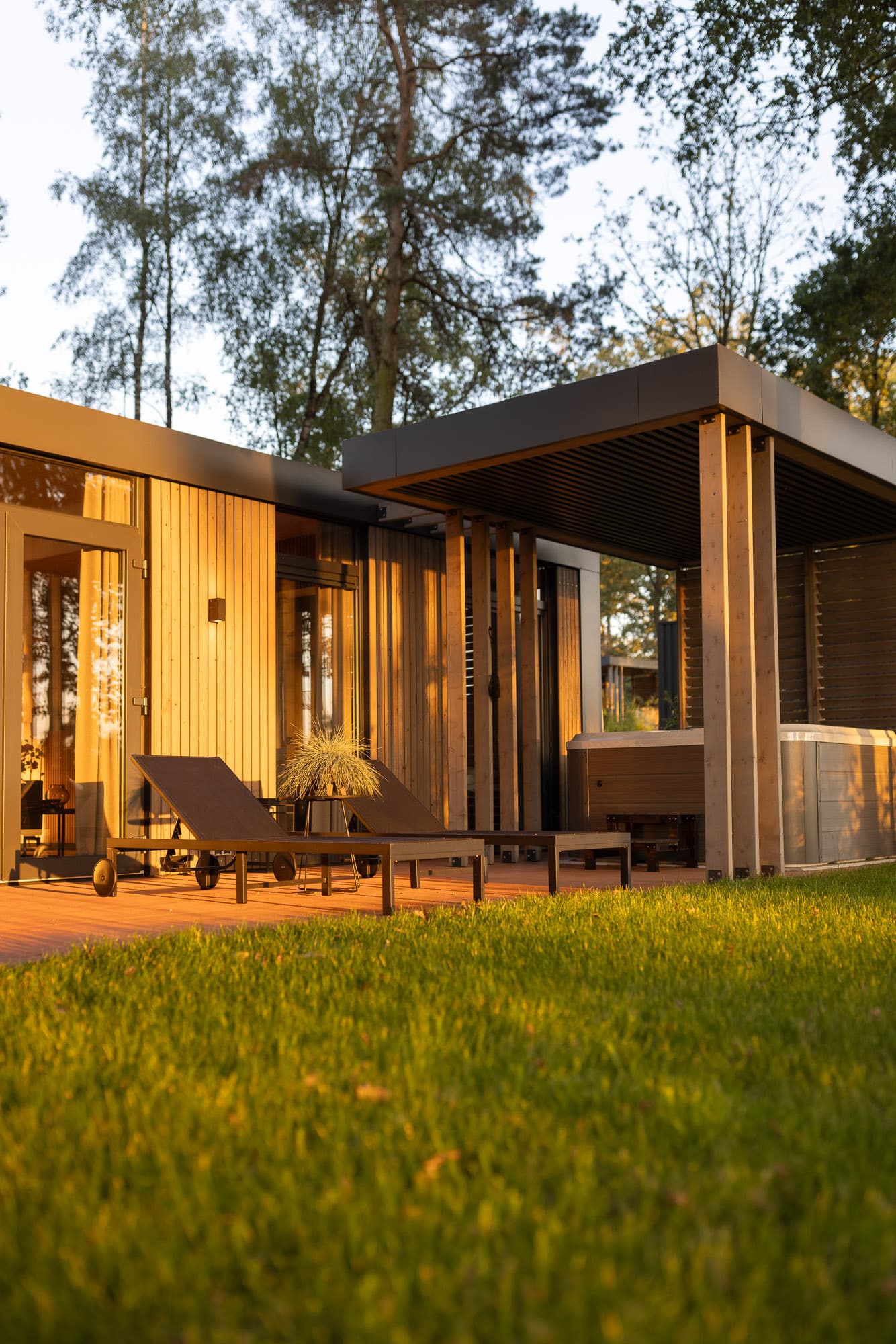 Aan de rand van het dorpje Markelo, op een heuvel in Twente staan 28 vrijstaande Panorama Lodges. Door de glazen façades kijk je uit over het over ons schilderachtige groene park of het glooiende landschap waardoor je ook binnen het gevoel krijgt je midden in de natuur te bevinden. Door de openslaande deuren loop je zo het ruime terras op.