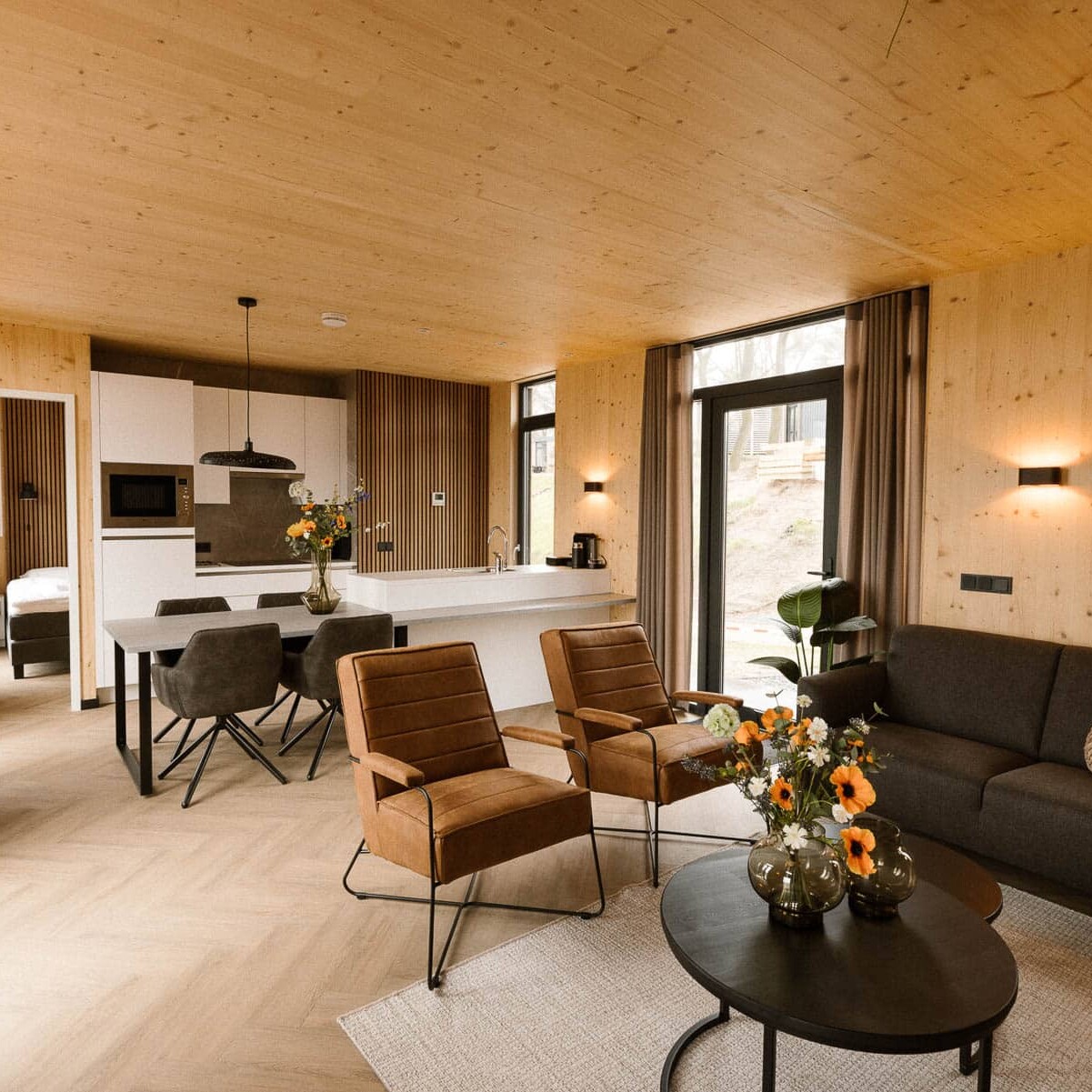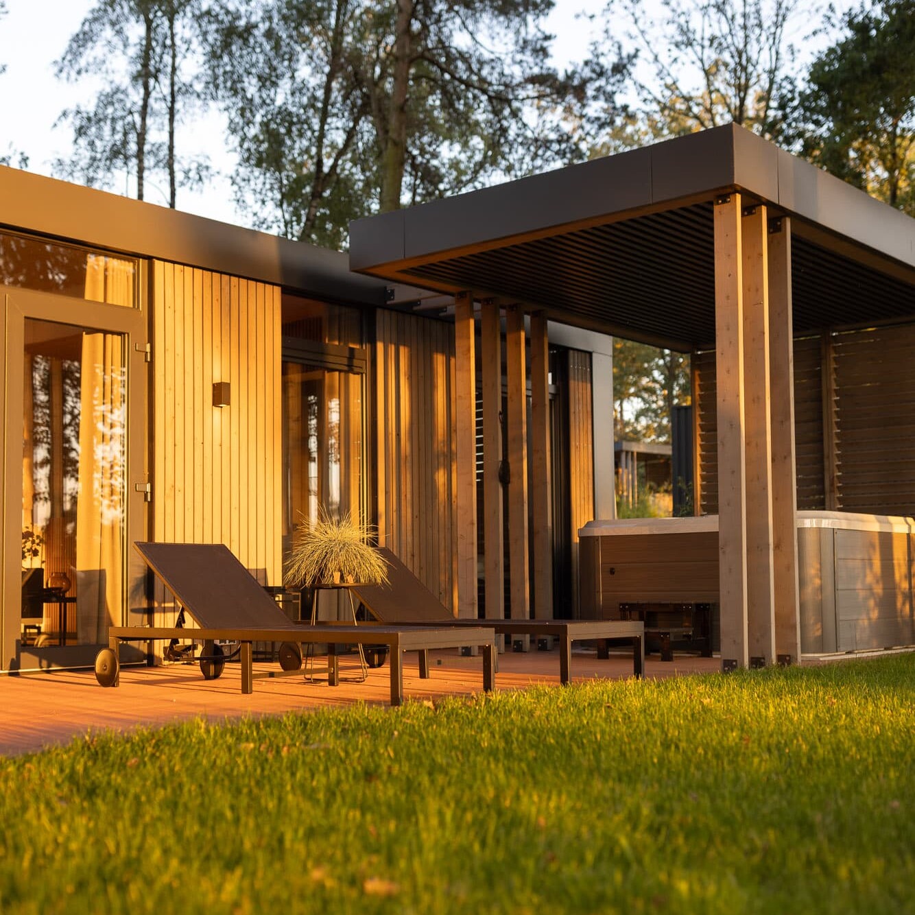 Aan de rand van het dorpje Markelo, op een heuvel in Twente staan 28 vrijstaande Panorama Lodges. Door de glazen façades kijk je uit over het over ons schilderachtige groene park of het glooiende landschap waardoor je ook binnen het gevoel krijgt je midden in de natuur te bevinden. Door de openslaande deuren loop je zo het ruime terras op.